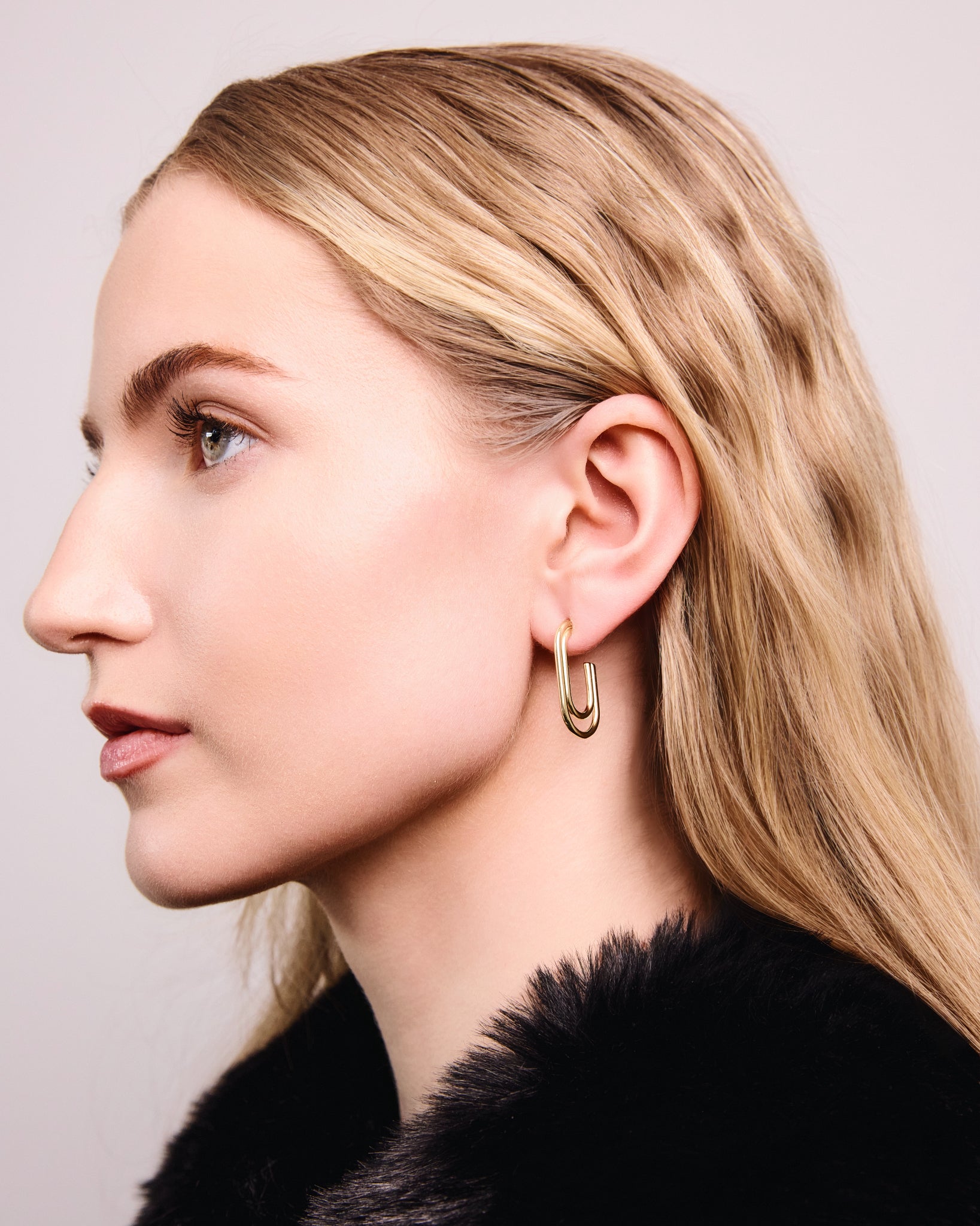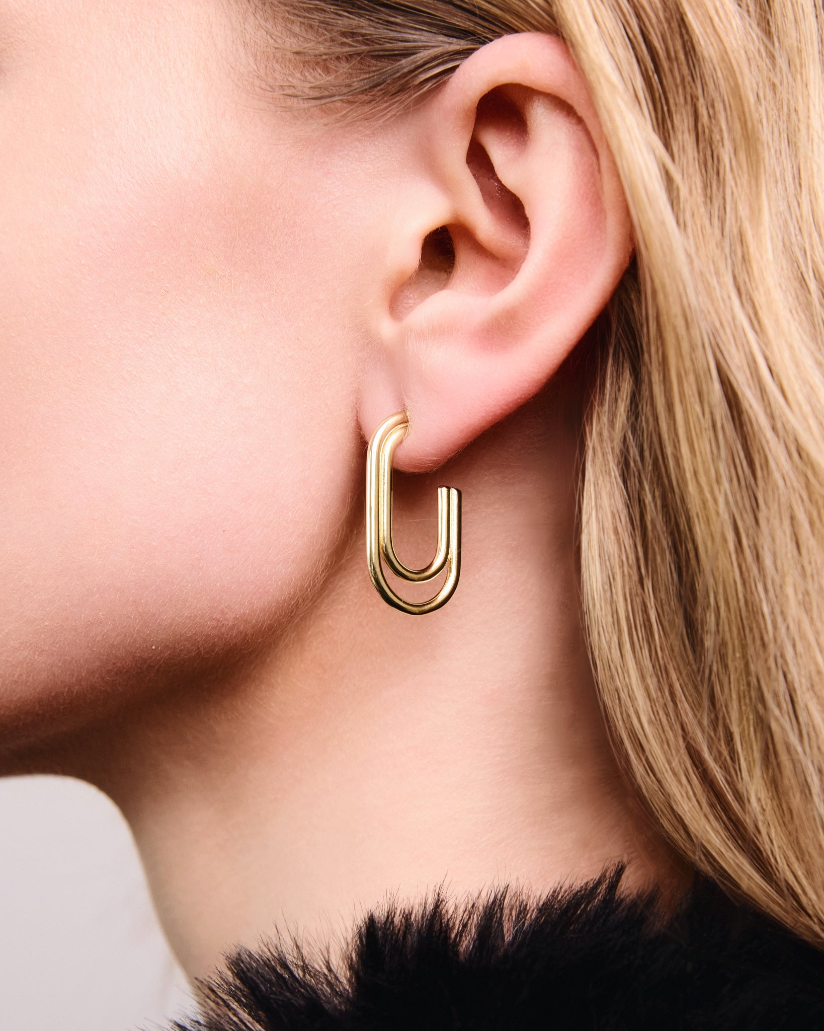 These double loop drop hoop earrings feature an open U-shape design with a smooth polished finish. Lightweight and comfortable, they’re easy to wear all day. A modern, minimalist style in gold or silver that works for everyday outfits or dressed-up looks.