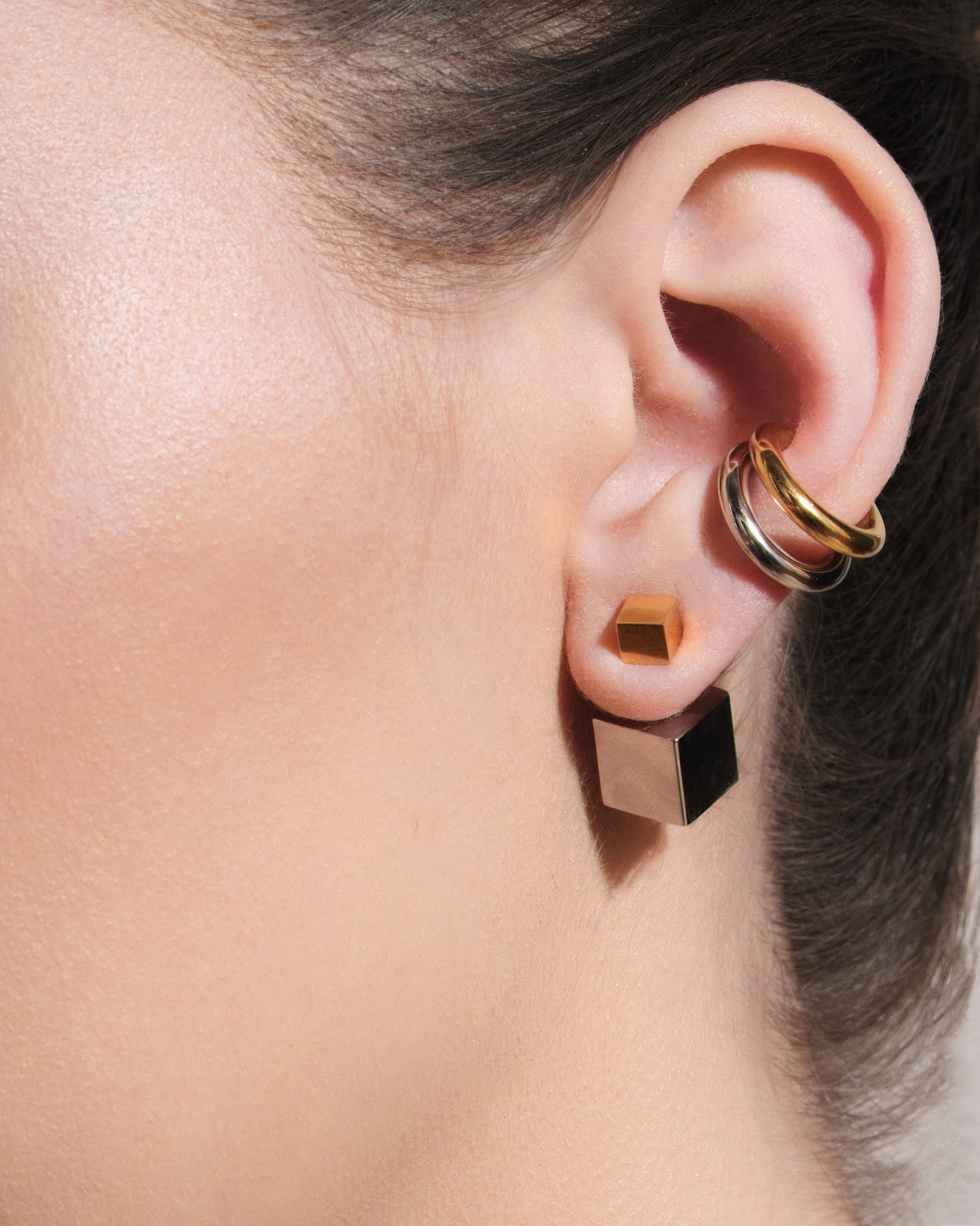 This double-layer ear cuff features two smooth, rounded bands that create a stacked look — no piercing needed. Its sleek and modern design adds the illusion of wearing multiple cuffs in one piece. Available in polished gold, silver, or two-tone finish, it’s a versatile accessory that complements any style. Lightweight and comfortable for everyday wear, this cuff brings a refined touch to your ear stack.