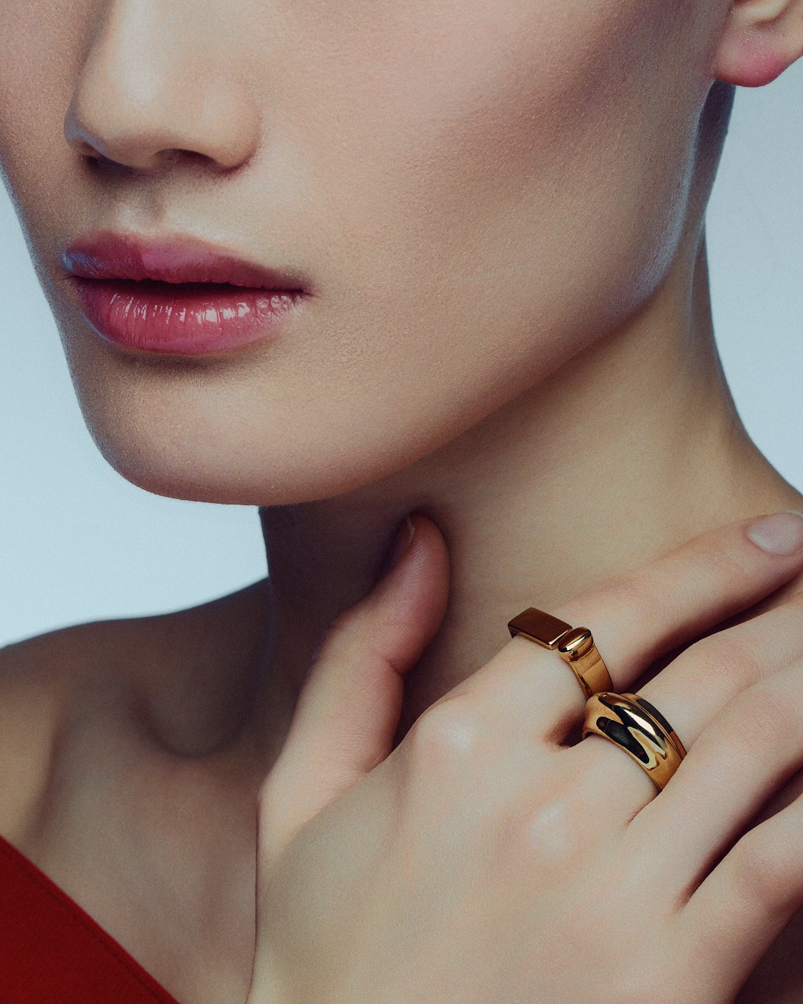 This modern open ring features a bold, sculptural design with one square end and one rounded tip. Its clean, minimal shape gives it a contemporary edge, while the high-polish gold finish adds a refined touch. Perfect for everyday wear or stacking with other minimalist rings. A statement piece that’s simple, elegant, and easy to style.