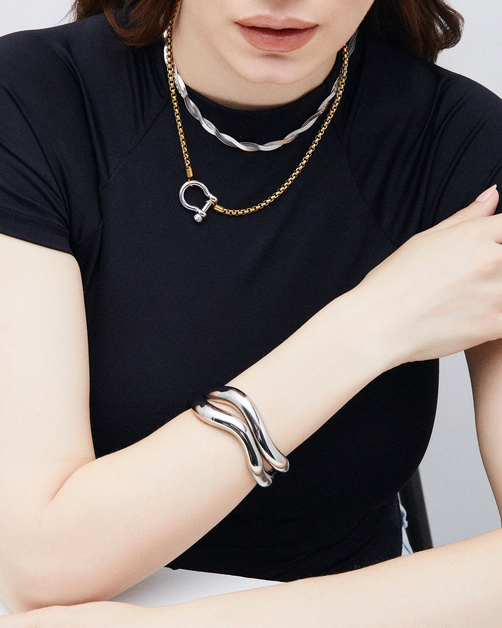 A timeless statement piece that balances modern minimalism with quiet luxury — perfect for wearing solo or stacked with other bangles.